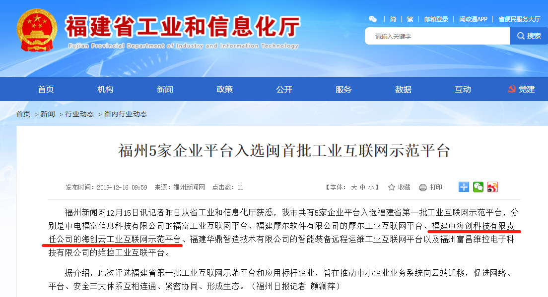 近日,福建省工业和信息化厅公示了福建省首批工业互联网示范平台和应用标杆企业名单。平博手机版app海创云工业互联网平台在众多参评企业中脱颖而出,成功入选。