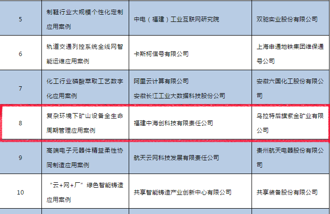 福建平博手机版app《复杂环境下矿山设备全生命周期管理》项目成功入选工信部2019年工业互联网平台创新应用案例。
