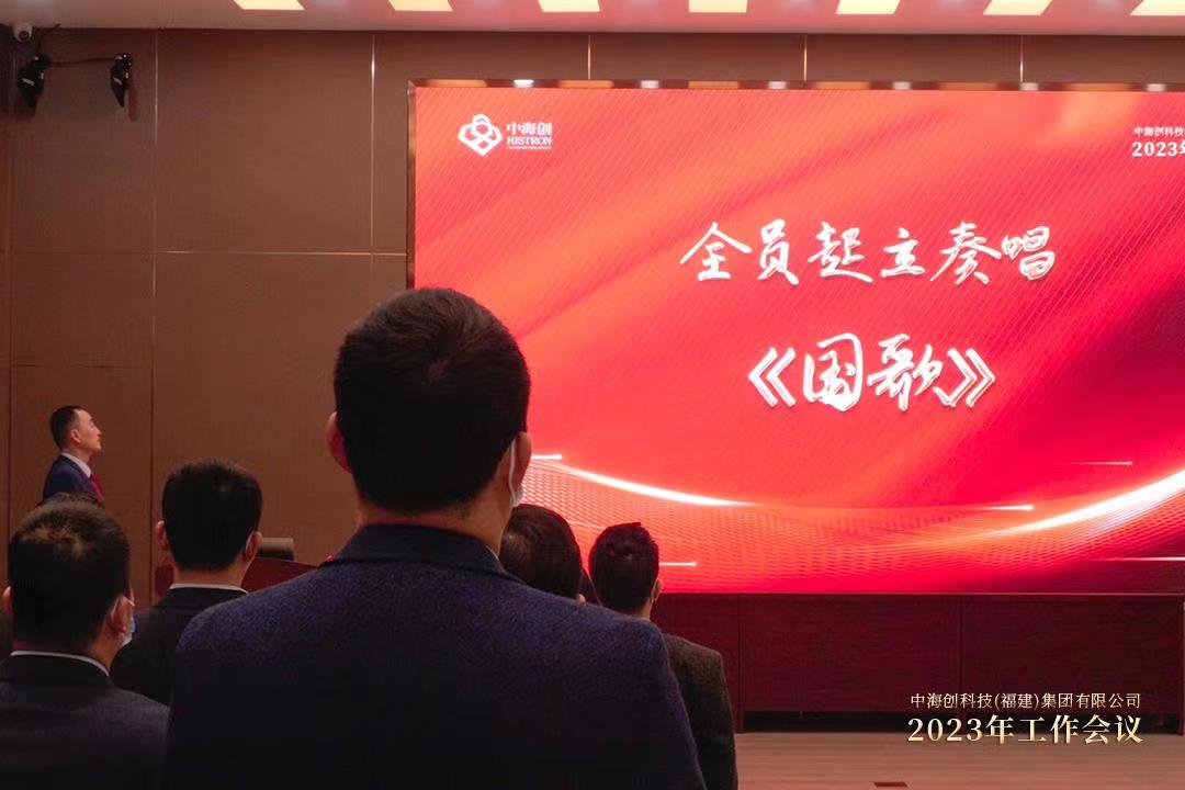 1月11日,中海创2023年工作会议在中海创集团研究院隆重举行。会议在海创人齐唱国歌声中拉开序幕。