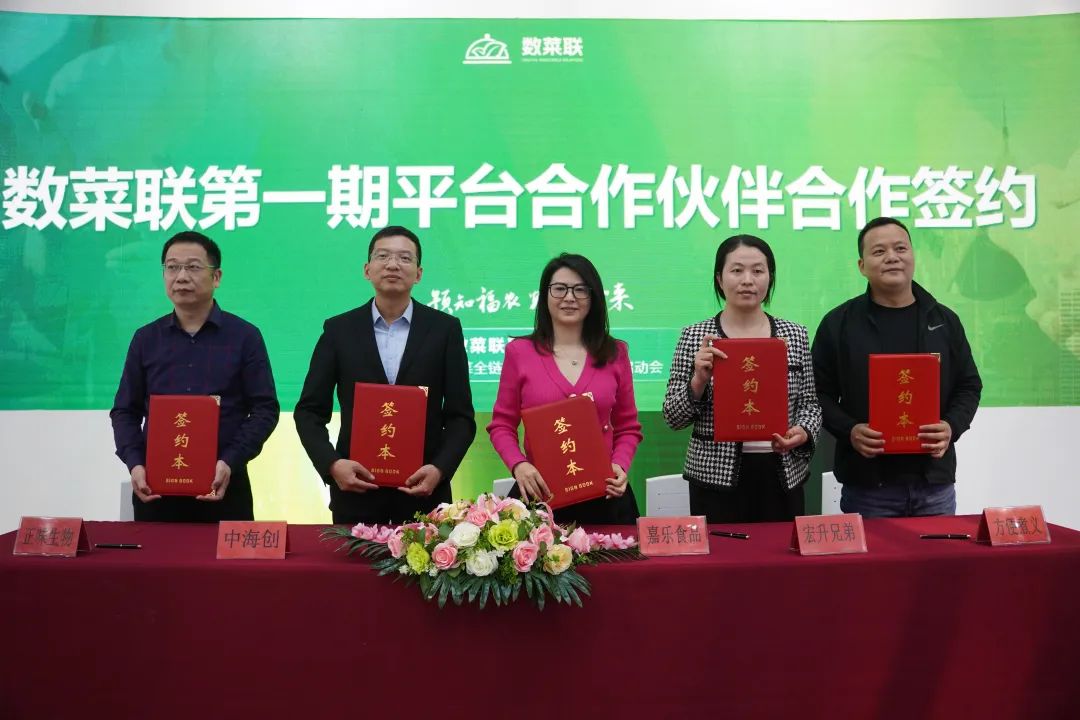 随后,天马食品、东水食品、泽霖食品、味太太食品、嘉乐食品、宏升兄弟、方便煮义、正味生物、金麦园食品、乐鸿国际、醉悦臣生物、大润优餐饮,共12家企业代表上台,作为数菜联第一期平台平博(中国)进行签约。