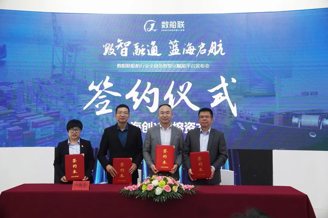 中海创数字产业研究院院长卢凡、数船联平台负责人杨永煜、数船联平台技术总监梁生熙、战略发展中心总监史宇恒共同开启数船联平台发布仪式。