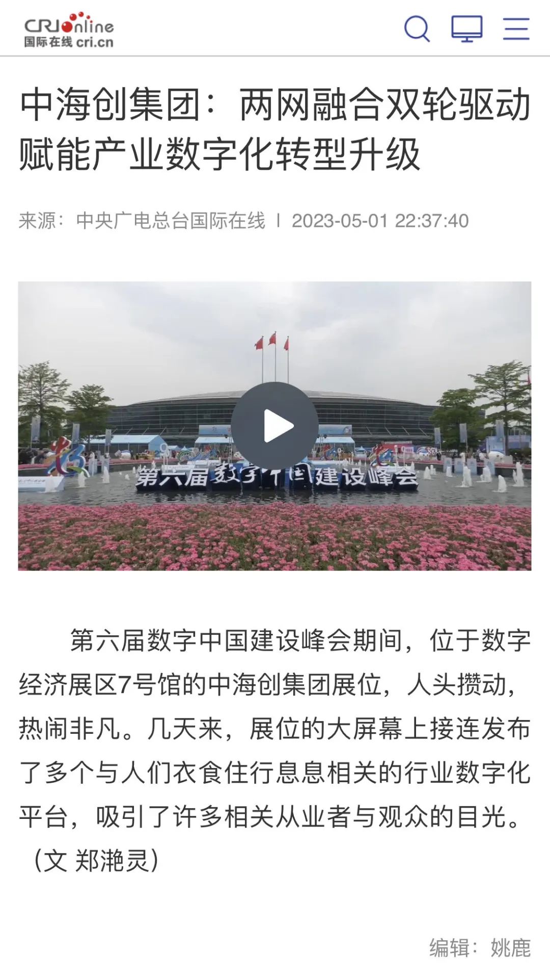 央广国际在线报道中海创:两网融合 双轮驱动 赋能产业数字化转型升级